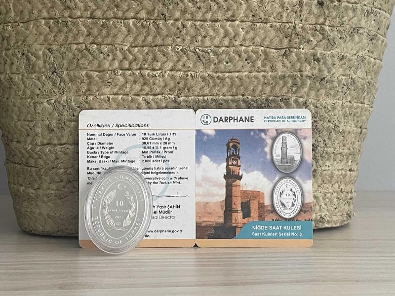 2021 - Niğde Saat Kulesi Darphane Sertifikalı Gümüş Hatıra Para - Çil, 16 gün önce satışa sunulmuştur.