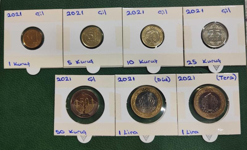 2021 Tam takım 1-5-10-25-50 kuruş 1 lira ters/düz Çil+++ kapamada Görseldeki ürün takım olarak gönderilecektir