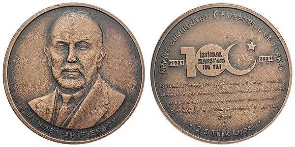 2021 YILI İSTİKLAL MARŞI KABULÜ'NÜN 100.YILI ''MEHMET AKİF ERSOY'' DARPHANE HATIRA BRONZ SERTİFİKALI