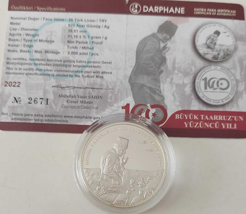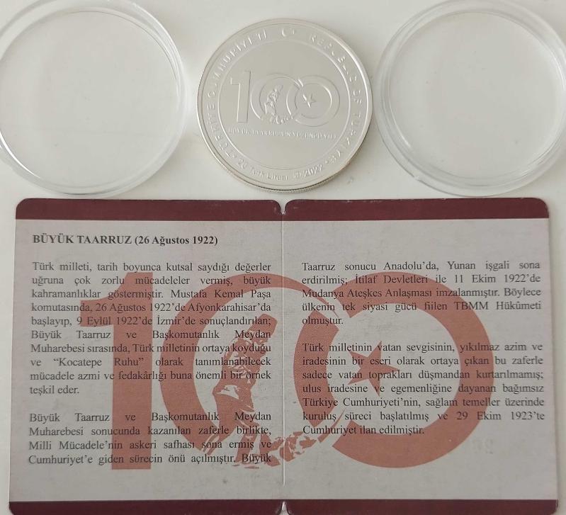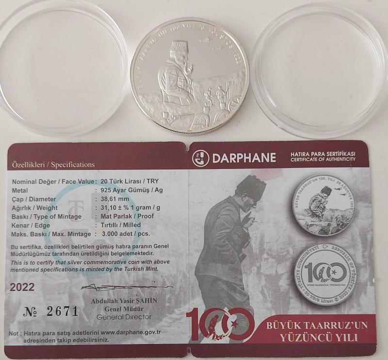 2022 BÜYÜK TAARRUZUN 100 YILI GÜMÜŞ 20 TÜRK LİRASI HATIRA PARASI DARPHANE BASKISI SERTİFİKALI ÇİL 2671 ÇOK NADİRDİR, en son dün güncellenmiştir.