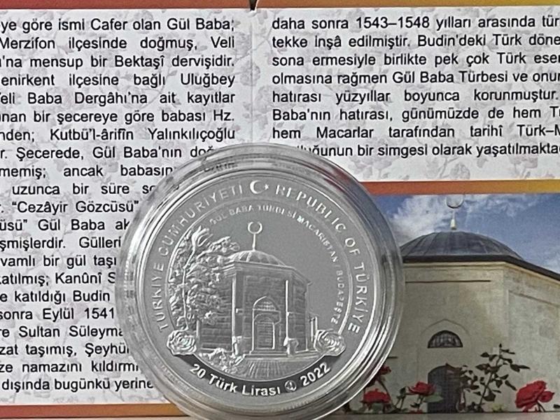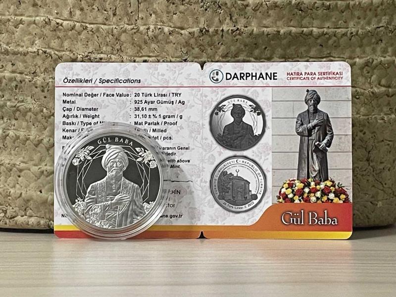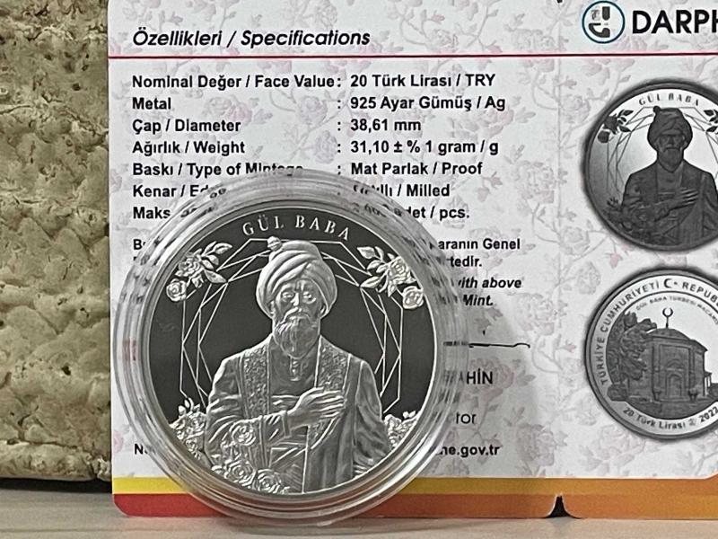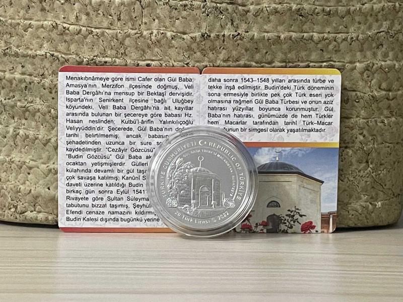 2022 - Gül Baba Hatıra Parası - Gümüş Sertifikalı - Çil kondisyon, dün satışa sunulmuştur.