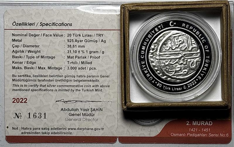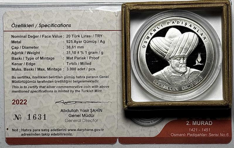 2022 II. Murad Osmanlı Padişahları Serisi No:6 , 925 Ayar Gümüş Hatıra Parası Sertifikalı Orjinal Darphane Kutusunda, en son bir ay önce güncellenmiştir.
