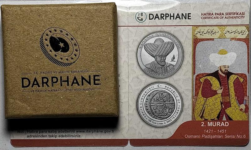 2022 II. Murad Osmanlı Padişahları Serisi No:6 , 925 Ayar Gümüş Hatıra Parası Sertifikalı Orjinal Darphane Kutusunda başlıklı ürün, Efemera, Müzik, Sinema > Nümismatik, Para, Madalya > Hatıra Paraları > Hatıra Parası kategorisi altında İkinci El olarak satılmaktadır.