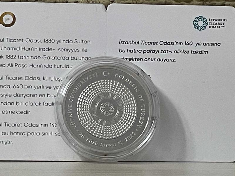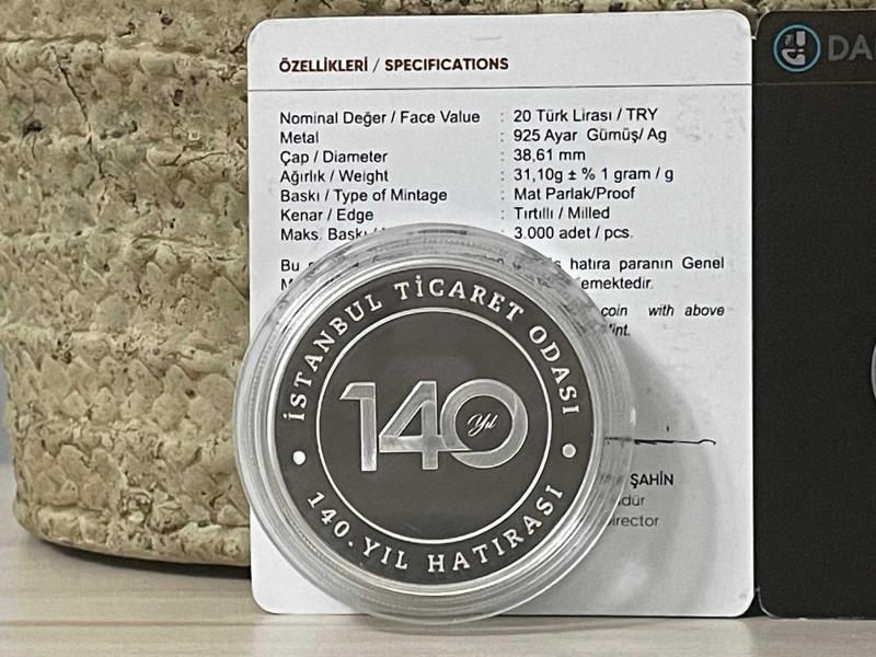 2022 - İstanbul Ticaret Odası (İTO) 140. Yıl Gümüş Hatıra Parası - Darphane sertifikalı, 16 gün önce satışa sunulmuştur.