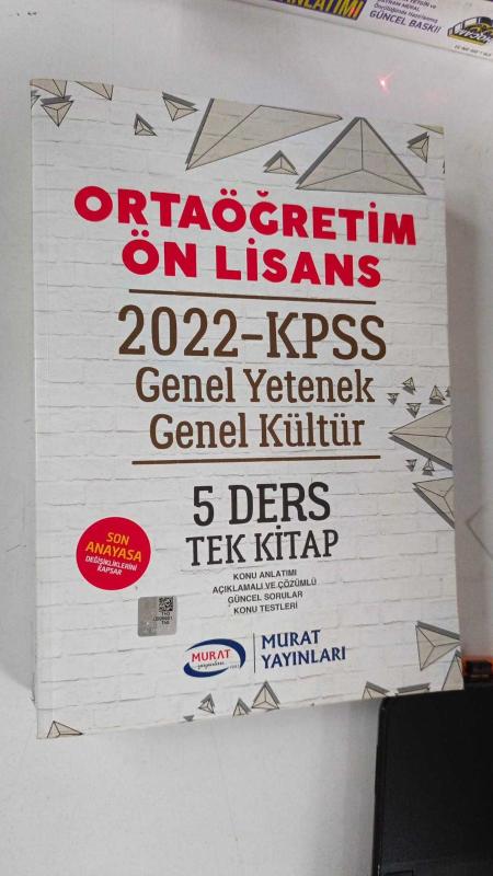 2022 KPSS Ortaöğretim Ön Lisans 2022 KPSS 5 DERS TEK KİTAP, Komisyon tarafından kaleme alınmıştır. Kitap 2022 yılında Murat Yayınları tarafından 9789944667203 ISBN kodu ile yayınlanmıştır. 1.132 sayfadır. 2022 KPSS Ortaöğretim Ön Lisans 2022 KPSS 5 DERS TEK KİTAP adlı eser Türkçe dilindedir.
