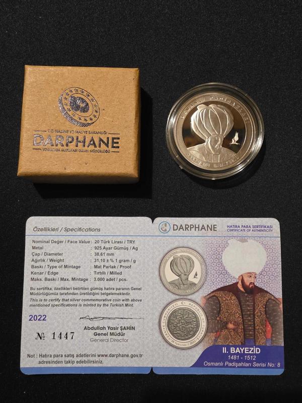 2022 YILI II. BAYEZİD DARPHANE HATIRA GÜMÜŞ " Osmanlı Padişahları Serisi No: 8 " – SERTİFİKALI, 6 gün önce satışa sunulmuştur.