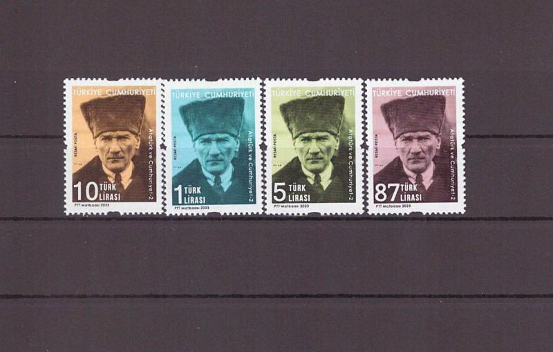 2023 Atatürk ve Cumhuriyet Konulu-2 Resmi Posta Pulu Mnh Lüks Tam Seri Pul, 2 ay önce satışa sunulmuştur.