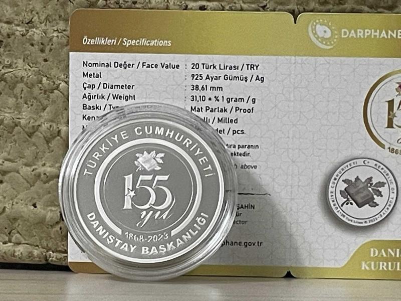 2023 - Danıştay ın Kuruluşunun 155. Yılı Gümüş Hatıra Parası - Çil, 16 gün önce satışa sunulmuştur.