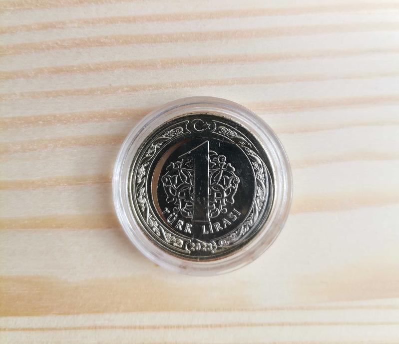 2023 Eror 1 lira ÇİL +++ kapsül içinde. Yazı kısmında kayık göbek ve göbek kısmında boşluk