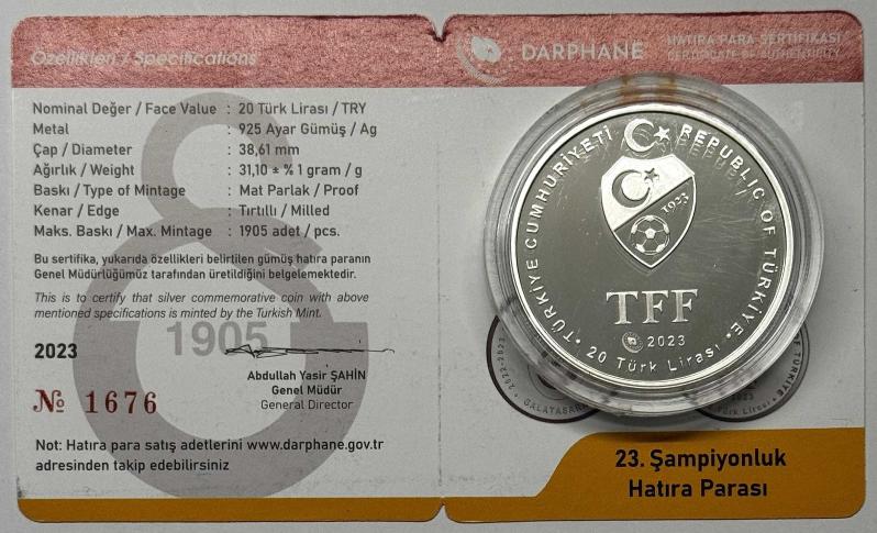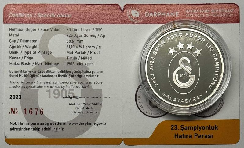 2023 Galatasaray 23. Şampiyonluk 925 Ayar Gümüş Hatıra Parası Sertifikalı, 2 gün önce satışa sunulmuştur.