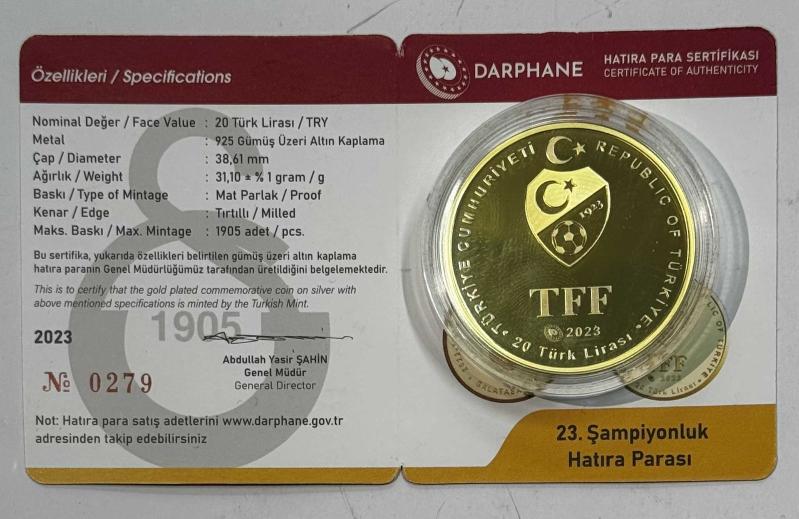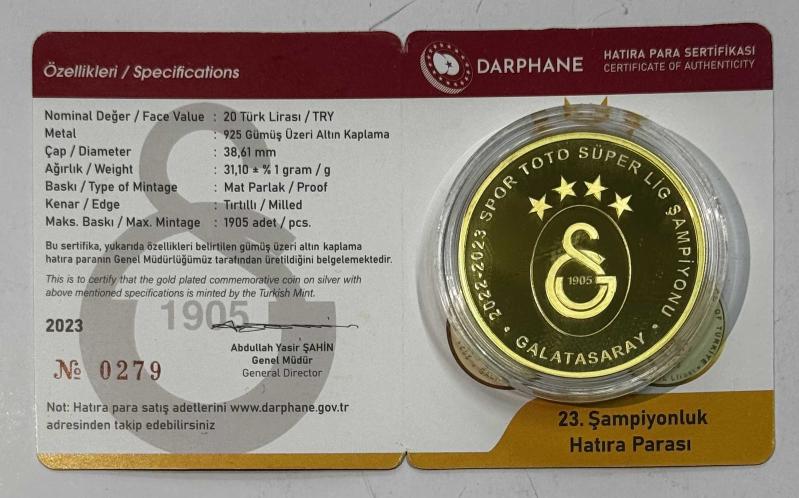 2023 Galatasaray 23. Şampiyonluk 925 Ayar Gümüş Üzeri Altın Kaplama Hatıra Parası Sertifikalı, 16 gün önce satışa sunulmuştur.