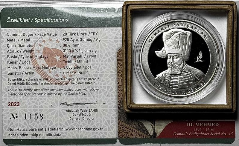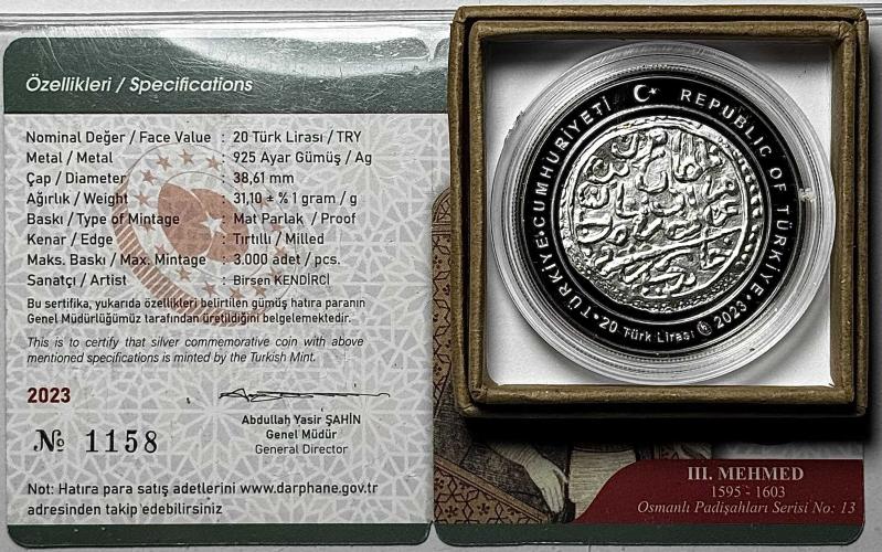 2023 III. Mehmed Osmanlı Padişahları Serisi No:13 925 Ayar Gümüş Hatıra Parası Sertifikalı Orijinal Darphane Kutusunda, en son bir ay önce güncellenmiştir.