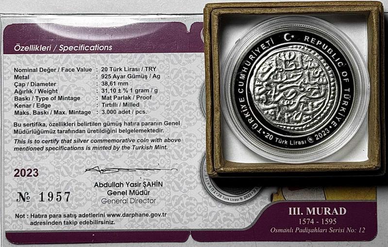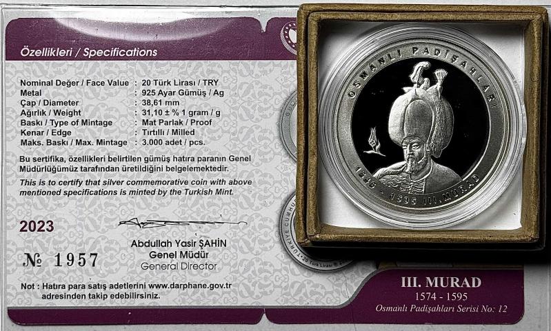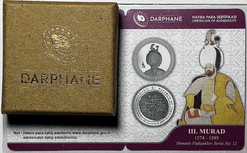 2023 III. Murad Osmanlı Padişahları Serisi No:12 925 Ayar Gümüş Hatıra Parası Sertifikalı Orijinal Darphane Kutusunda, 5 gün önce satışa sunulmuştur.