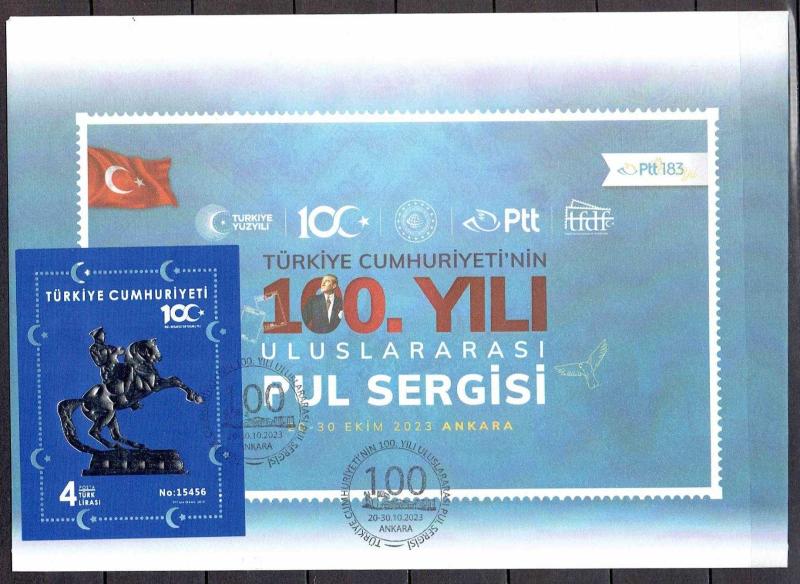 2023 TÜRKİYE CUMHURİYETİ'NİN 100.YILI ULUSLARARASI PUL SERGİSİ ÖZEL ZARFINDA , 100. YIL KONULU ATATÜRK BLOK PULLU ZARFLAR. FOTOĞRAFLARDA GÖRÜLEN DÖRT (4) ADET BÜYÜK EBATLI ZARF GÖNDERİLECEKTİR. SATIŞTA OLAN DİĞER PULLARIMA DA BAKINIZ