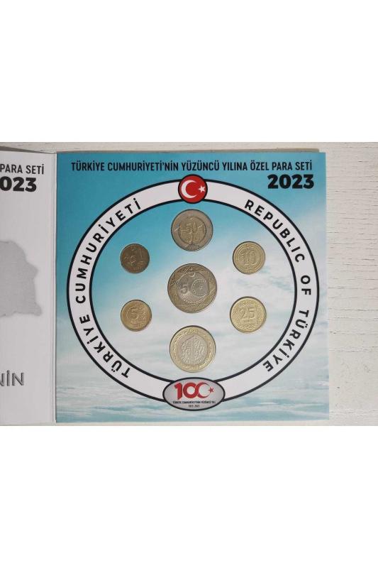 2023 Türkiye Cumhuriyeti 100.Yıl Tedavul Hatira Seti Çil.; Orijinal kartonun acilir kapanir kullanilmamis hatiralik koleksiyon.