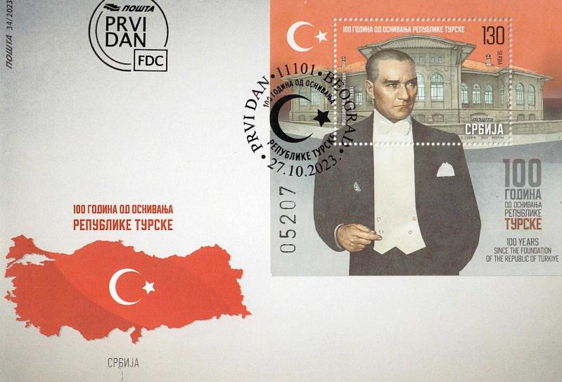 2023 Türkiye Cumhuriyeti'nin 100. Yılı Sırbistan FDC/İlkgün Zarfı, 3 ay önce satışa sunulmuştur.