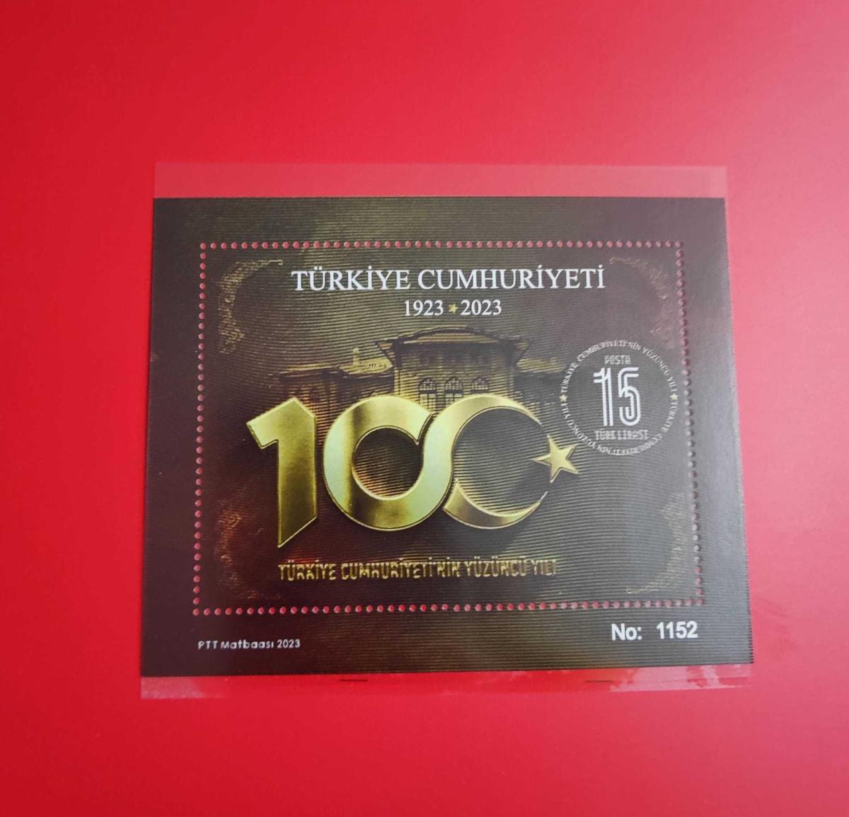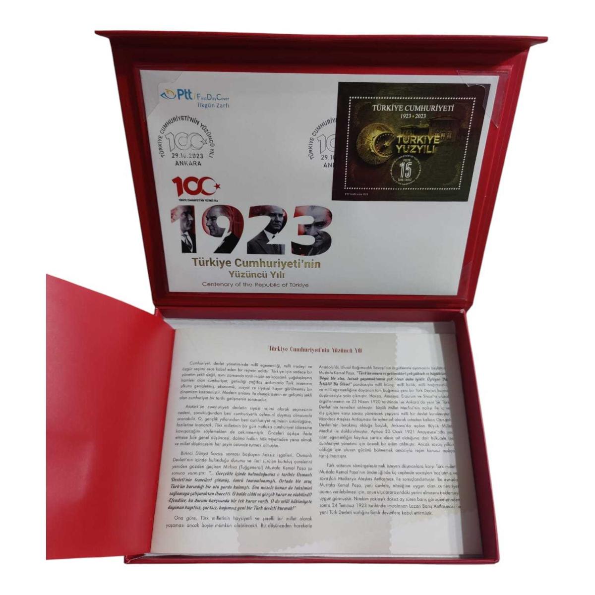 2023 Türkiye Yüzyılı ''Türkiye Cumhuriyeti'nin 100. Yılı'' Portföy Özel Kutusunun İçerisinde , İlk Gün Damgalı FDC ve Biri Seri Numaralı Olmak Üzere 2 Adet Blok Pul Mevcuttur. Seri Numaraları Farklılık Gösterebilir.