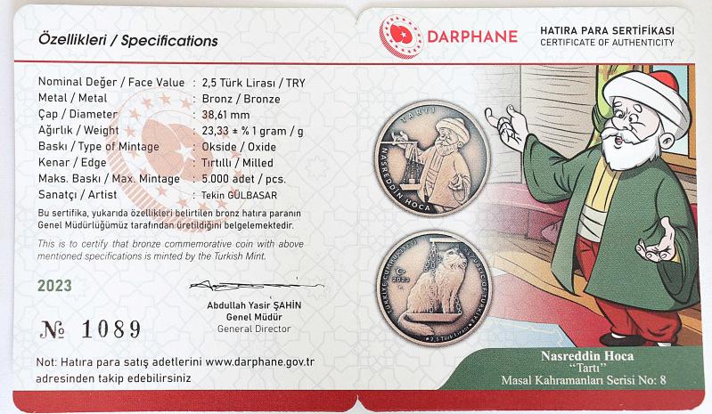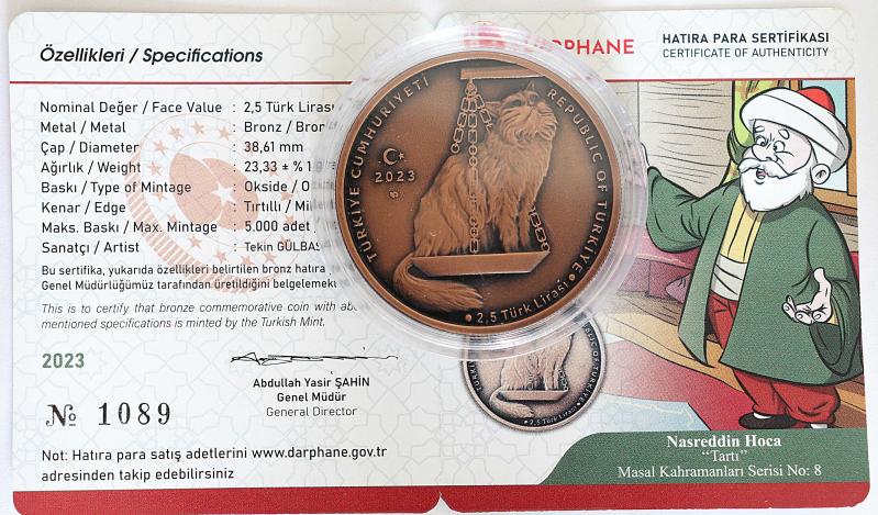 2023 YILI MASAL KAHRAMANLARI SERİSİ NO 8 ''TARTI'' HATIRA BRONZ PARA 1 (SERTİFİKALI) başlıklı ürün, Efemera, Müzik, Sinema > Nümismatik, Para, Madalya > Hatıra Paraları > Hatıra Parası kategorisi altında İkinci El olarak satılmaktadır.