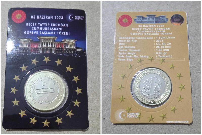2023 yılında Recep Tayyip Erdoğan'ın göreve başlama parası başlıklı ürün, Efemera, Müzik, Sinema > Nümismatik, Para, Madalya > Hatıra Paraları kategorisi altında Yeni olarak satılmaktadır.