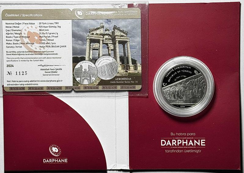 2024 Afrodisias Antik Kentler Serisi No:16 , 925 Ayar Gümüş Hatıra Parası Sertifikalı Orijinal Darphane Kitinde, 5 gün önce satışa sunulmuştur.