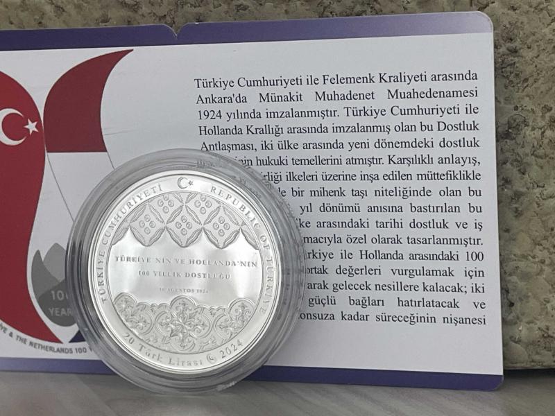 2024 - Hollanda İle Dostluk Antlaşması'nın 100. Yılı Gümüş Hatıra Parası - Darphane sertifikalı - Çil, bir ay önce satışa sunulmuştur.