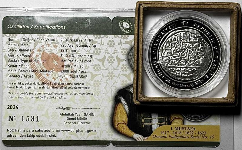 2024 I. Mustafa Osmanlı Padişahları Serisi No:15 925 Ayar Gümüş Hatıra Parası Sertifikalı Orijinal Darphane Kutusunda başlıklı ürün, Efemera, Müzik, Sinema > Nümismatik, Para, Madalya > Hatıra Paraları > Hatıra Parası kategorisi altında İkinci El olarak satılmaktadır.