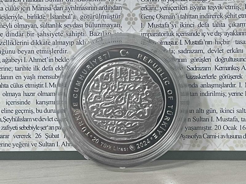 2024 - I Mustafa - Osmanlı Padişahları Serisi No: 15 - Darphane Sertifikalı Gümüş Hatıra Para - Çil kondisyon, 7 gün önce satışa sunulmuştur.
