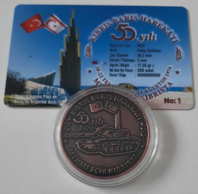 2024 Kıbrıs Barış Harekatı Hatıra Madalyonu Sertifikalı başlıklı ürün, Efemera, Müzik, Sinema > Nümismatik, Para, Madalya > Hatıra Paraları > Hatıra Parası kategorisi altında İkinci El olarak satılmaktadır.