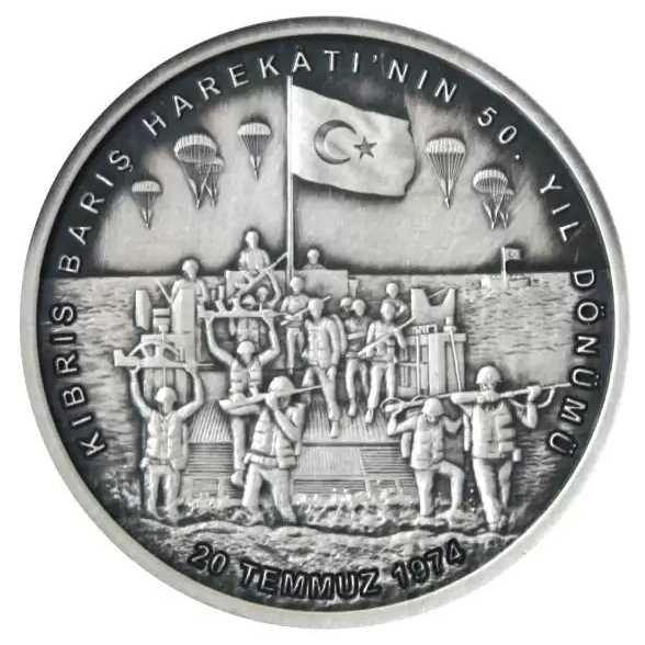 2024 Kıbrıs Barış Harekatı'nın 50. Yıl Dönümü (Okside Gümüş) Darphane Hatıra Parası ''SERTİFİKALIDIR' *YIL / YEAR: 2024 *NOMİNAL DEĞER / FACE VALUE: 20 TÜRK LİRASI / TRY *METAL: 925 AYAR GÜMÜŞ / AG *ÇAP / DİAMETER: 38,61 mm *AĞIRLIK / WEİGHT: 31,10 ± 1GRAM *BASKI / TYPE OF MİNTAGE: OKSİDE & MİNE / OXIDE ENAMEL *KENAR / EDGE: TIRTILLI / MİLLED *MAKS BASKI / MAX. MINTAGE: 3000 ADET / PCS. *SANATÇI / ARTİST : Nalan YERLİBUCAK ÇAKIR *DARPHANE SERTİFİKASI İLE BERABER KAPSÜL İÇİNDE GÖNDERİLİR. KOLEKSİYON TASFİYESİDİR... FATURA GÖNDERİLMEYECEKTİR...!!!