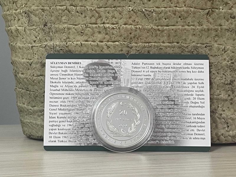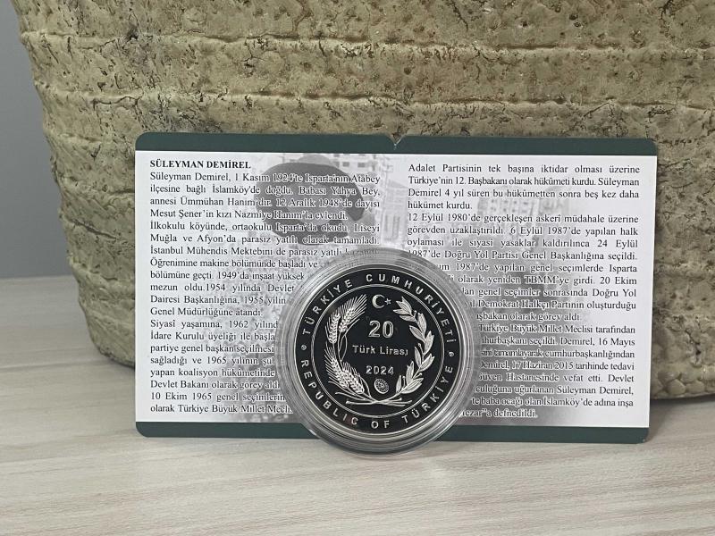 2024 - Süleyman Demirel Gümüş Hatıra Parası - Darphane sertifikalı - Çil, 7 gün önce satışa sunulmuştur.