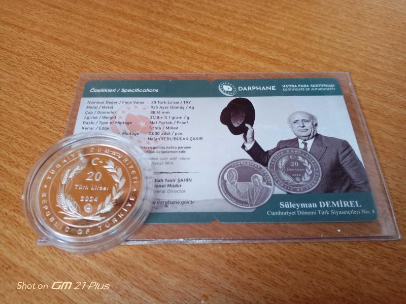 2024 - Süleyman Demirel Gümüş Hatıra Parası - Darphane sertifikalı - Çil, en son 16 gün önce güncellenmiştir.
