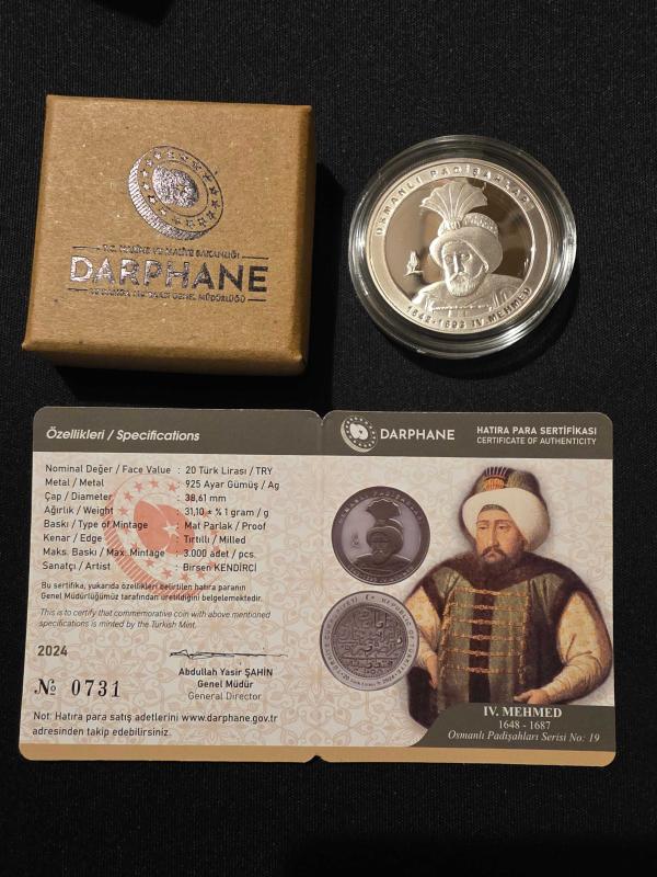 2024 YILI IV. MEHMED DARPHANE HATIRA GÜMÜŞ " Osmanlı Padişahları Serisi No: 19 " Sertifikalıdır., 7 gün önce satışa sunulmuştur.