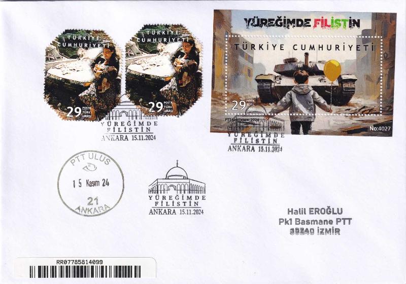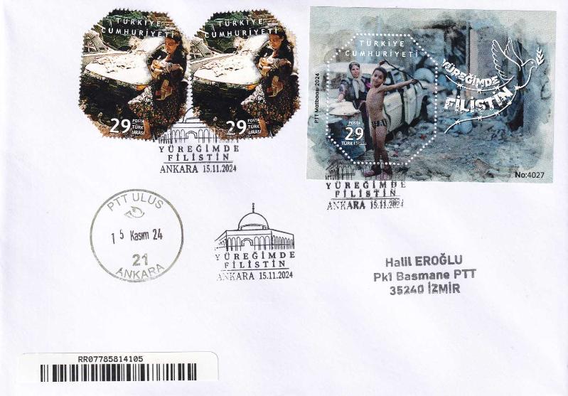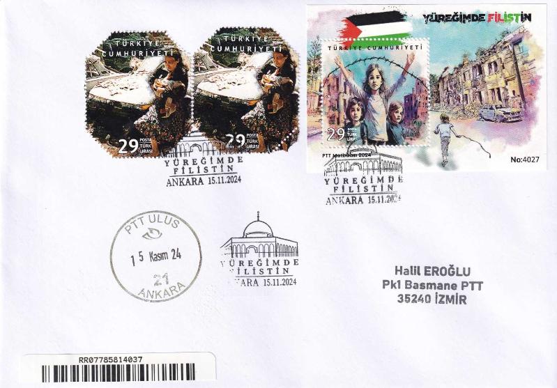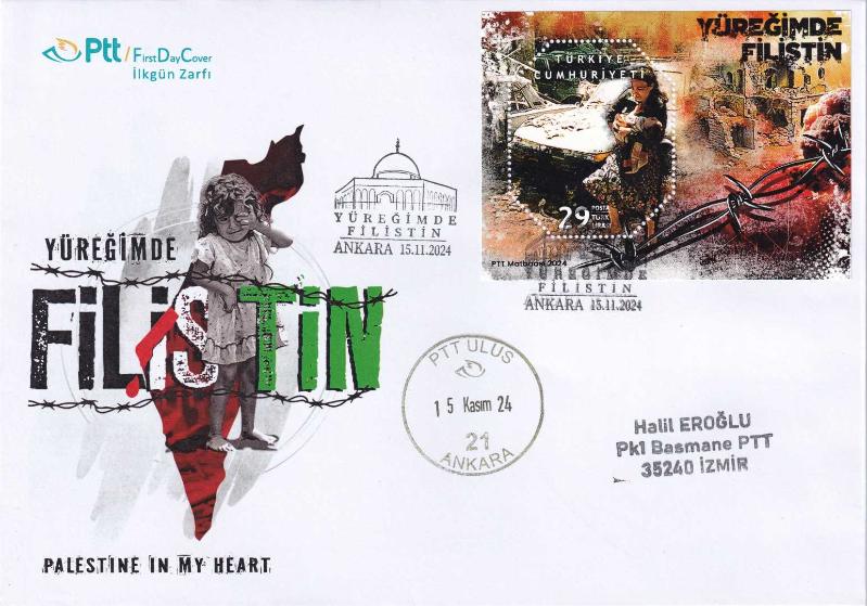2024 YÜREĞİMDE FİLİSTİN NUMARALI BLOKLARIN TAAHHÜTLÜ POSTANAN GEÇMİŞ İLKGÜN FDC TAM TAKIM PORTFÖY, 10 ay önce satışa sunulmuştur.