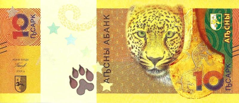 Yabancı Kağıt Para 2024 Yılı Abhazya 10 Aspar Çil Kondüsyon Abhazya Cumhuriyeti tarafından 2024 yılında basılan hatıra nitelikli 10 Apsar banknotudur. Abhazya Bankası tarafından 10 Haziran 2024'te dolaşıma çıkarılan bu para, özellikle tasarımı ve koleksiyon değeriyle dikkat çekmektedir. Banknotun Öne Çıkan Özellikleri Ana Tema: Ön yüzünde görkemli bir Kafkas leoparının (Panthera pardus tulliana) yüzü ve süslemeli antik bir bronz balta tasviri yer alır. Semboller: Leopar pençesi izi, Abhazya devlet arması, yedi adet beş köşeli yıldız ve Kiril alfabesiyle yazılmış "Abhazya Bankası" ibaresi bulunur. Arka Yüz: Arka tarafta geleneksel Abhaz askeri ve hiyerarşik asası olan "alabasha"nın üst kısmı, bir eğrelti otu ve güvenlik özelliklerine yönlendiren bir QR kod yer alır. Güvenlik: Filigran olarak yine Kafkas leoparı kullanılmıştır. Banknotta ayrıca belirli ışıklar altında parlayan fosforlu özellikler mevcuttur.