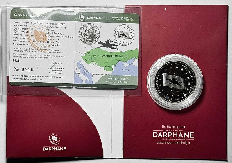 2025 Avar Kağanlığı Türk Devletleri Serisi No:6 925 Ayar Gümüş Hatıra Parası Sertifikalı Orijinal Darphane Kitinde, 5 gün önce satışa sunulmuştur.