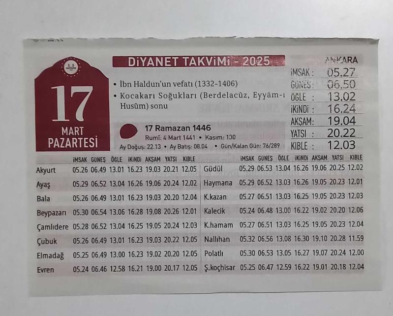 2025 Diyanet Takvimi - 17 Mart 2025, en son 6 ay önce güncellenmiştir.