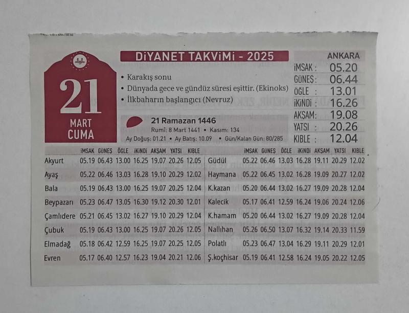 2025 Diyanet Takvimi - 21 Mart 2025, en son 4 ay önce güncellenmiştir.