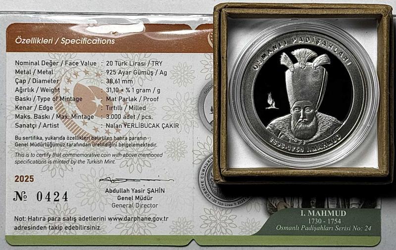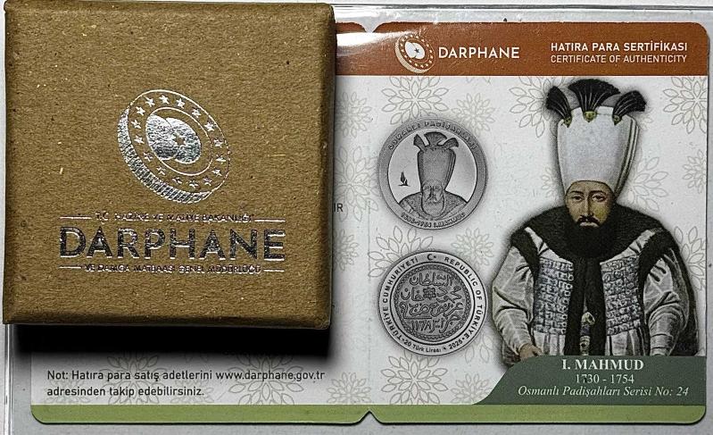 2025 I. Mahmud Osmanlı Padişahları Serisi No:24 925 Ayar Gümüş Hatıra Parası Sertifikalı Orijinal Darphane Kitinde, 5 gün önce satışa sunulmuştur.