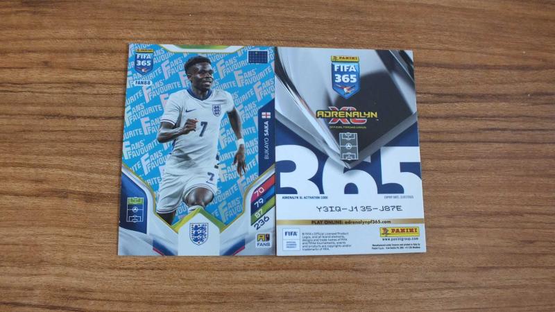 2026 Panini FIFA 365 Bukayo Saka FANS / Fans' Favourite Blue Kart No:FAN88bu ( MAVİ ), dün kitantik’te satışa sunulmuştur.