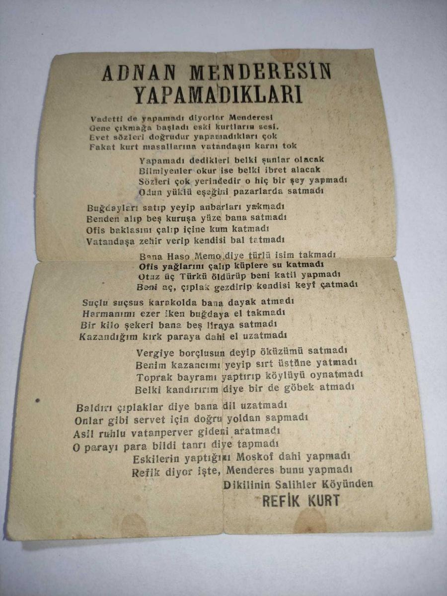 20487-REFİK KURT TARAFINDAN KALEME ALINMIŞ ADNAN MENDERESİN YAPAMADIKLARI