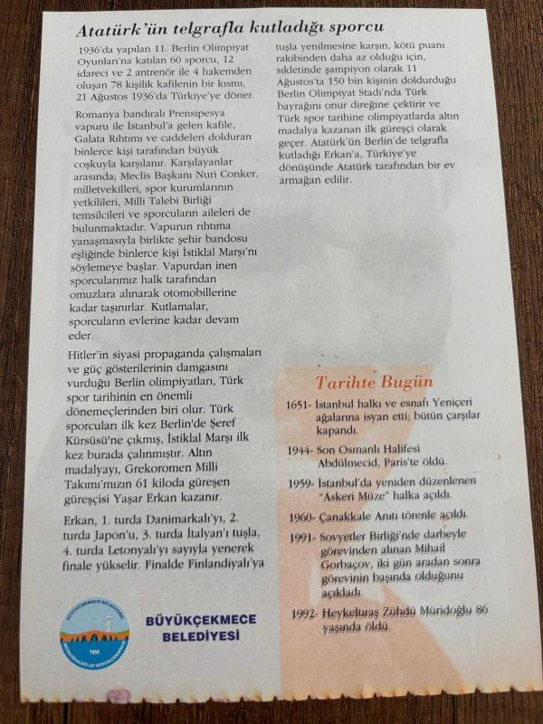 21 AĞUSTOS 2008 - TAKVİM YAPRAĞI - DOĞUM GÜNÜ HEDİYESİ - GAZİ MUSTAFA KEMAL ATATÜRK FOTOĞRAFLI BÜYÜKÇEKMECE BELEDİYESİ TAKVİMİ - Florya'da çocuklarla - Atatürk'ün telgrafla kutladığı sporcu - 1944- Son Osmanlı Halifesi Abdülmecid, Paris'te öldü - 1959- İstanbul'da yeniden düzenlenen "Askeri Müze" halka açıldı - 1960- Çanakkale Anıtı törenle açıldı - 1991- Sovyetler Birliği'nde darbeyle görevinden alınan Mihail Gorbaçov, iki gün aradan sonra görevinin başında olduğunu açıkladı - 1992- Heykeluraş Zühdü Müridoğlu 86 yaşında öldü, en son 9 ay önce güncellenmiştir.