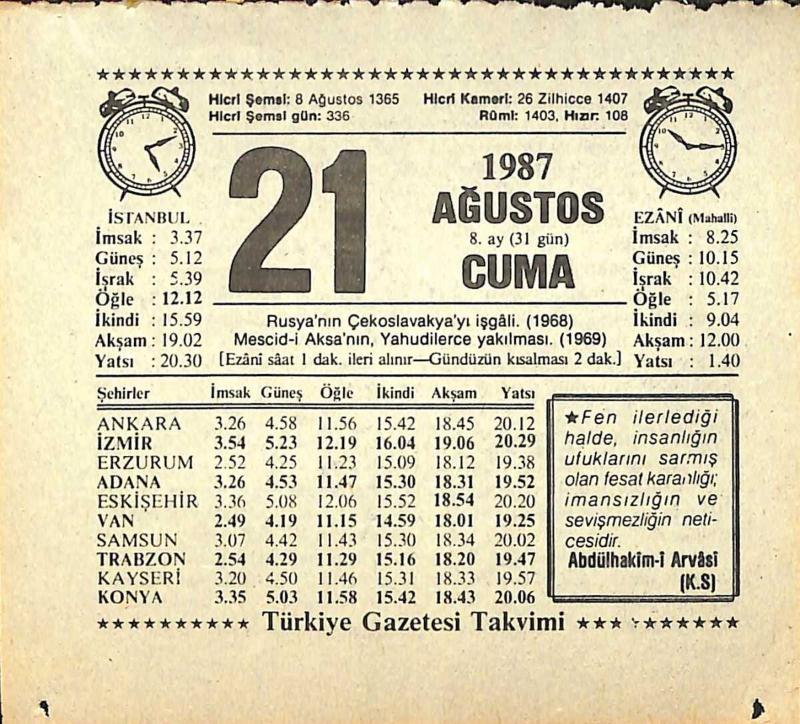 21 Ağustos 1987 Takvim Yaprağı - Doğum Günü Hediyesi EFMN13864, en son 21 gün önce güncellenmiştir.