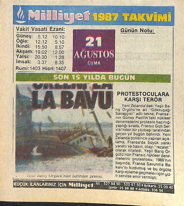 21 Ağustos 1987 Takvim Yaprağı - Doğum Günü Hediyesi EFMN14097, en son 22 gün önce güncellenmiştir.