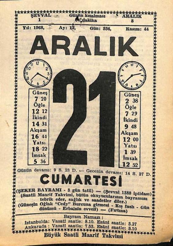 21 Aralık 1968 Takvim Yaprağı - Doğum Günü Hediyesi EFM(N)11055, en son 19 gün önce güncellenmiştir.