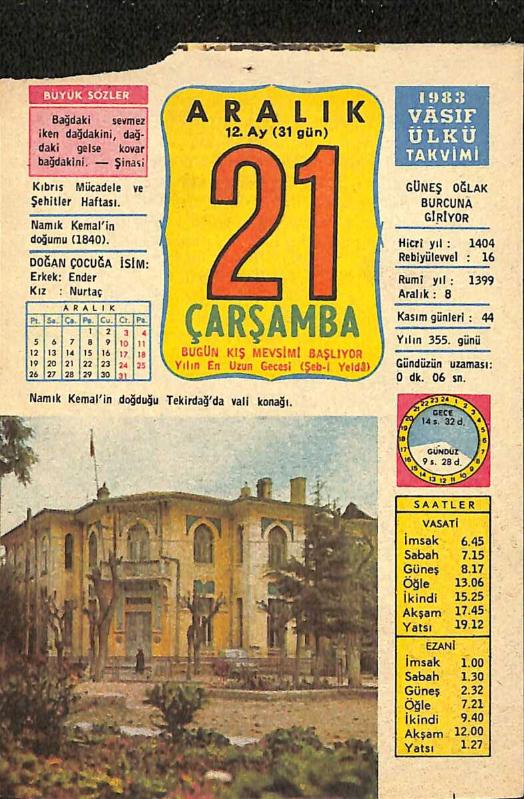 21 Aralık 1983 Takvim Yaprağı - Doğum Günü Hediyesi EFMN13701, en son 18 gün önce güncellenmiştir.