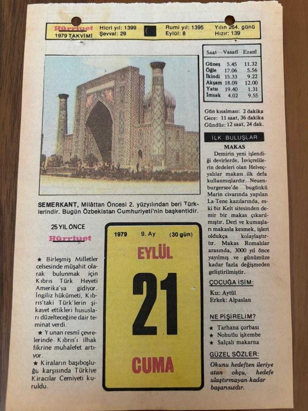 21 EYLÜL 1979 - TAKVİM YAPRAĞI - DOĞUM GÜNÜ HEDİYESİ - HÜRRİYET TAKVİMİ - PİS BİR İŞ ROMANI - Büyük ressam ve şair Bedri Rahmi Eyüpoğlu nun ölümü (1975) - Çanakkale ilçesi Ayvacık'ın "Kurtuluş Günü" - Yazar Ahmet Rasim'in ölümü (1932) başlıklı ürün, Efemera, Müzik, Sinema > Belge ve Evraklar > Takvimler kategorisi altında İkinci El olarak satılmaktadır.