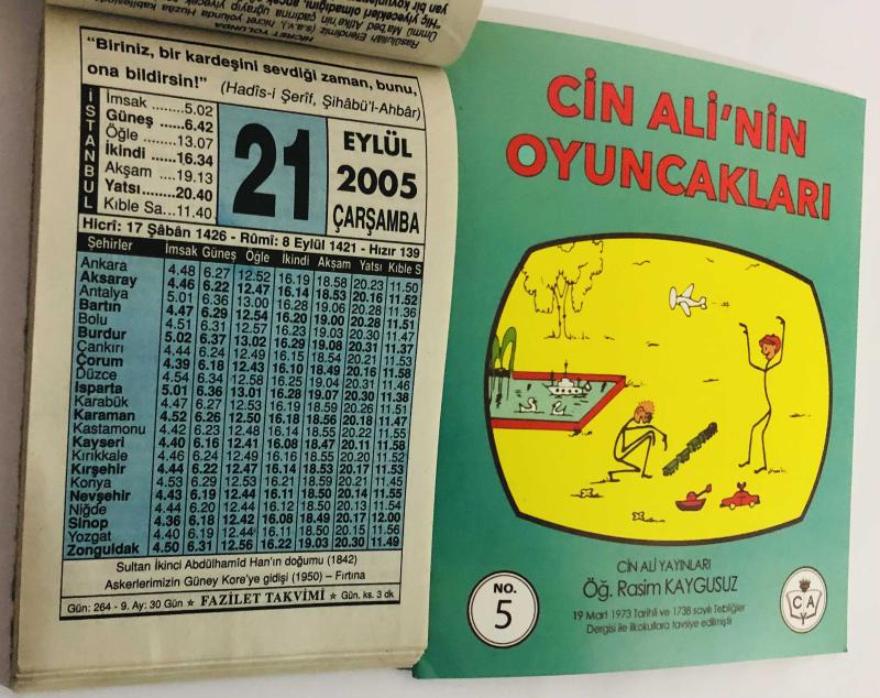 21 Eylül 2005 hediyelik orijinal Fazilet takvim yaprağı (Cin Ali kitabı hediyeli:), 3 yıl önce satışa sunulmuştur.
