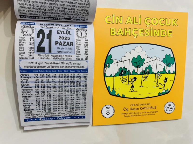 21 Eylül 2025 hediyelik orijinal Türkiye takvim yaprağı (Cin Ali kitabı hediyeli:), en son 7 ay önce güncellenmiştir.