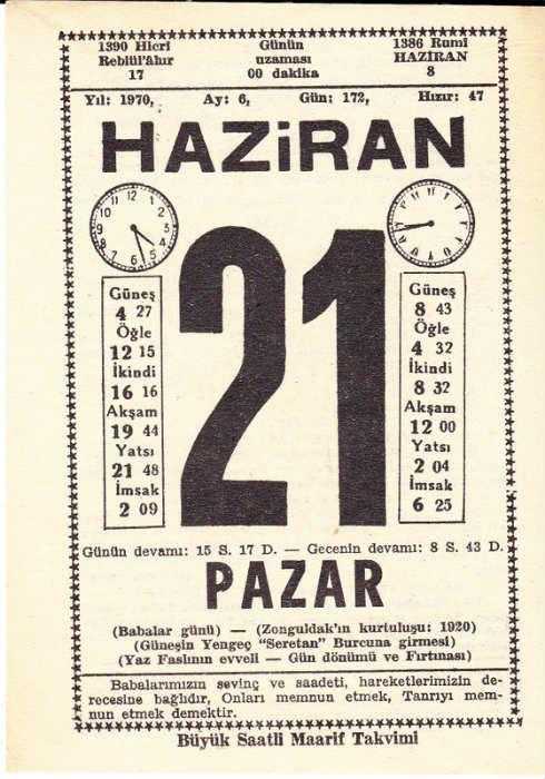 21 HAZİRAN 1970 SAATLİ MAARİF TAKVİMİ YAPRAĞI, en son 1 yıl önce güncellenmiştir.