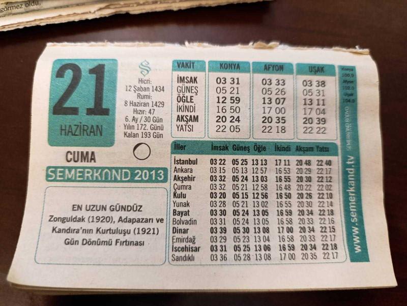 21 HAZİRAN 2013 TAKVİM YAPRAĞI, en son 1 yıl önce güncellenmiştir.
